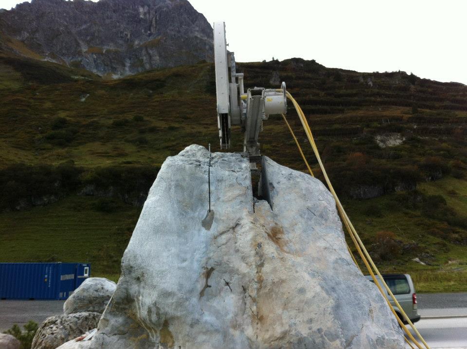 Herstellen einer Aussparung für die Montage einer Statue für einen Kunden in Zürs (Vorarlberg/Österreich).