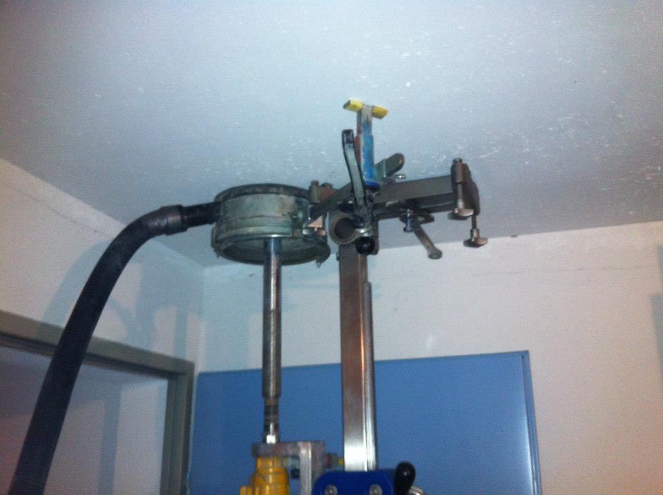 Herstellen einer Bohrung in die Decke mit gleichzeitiger Absaugung des anfallenden Bohrschlamms